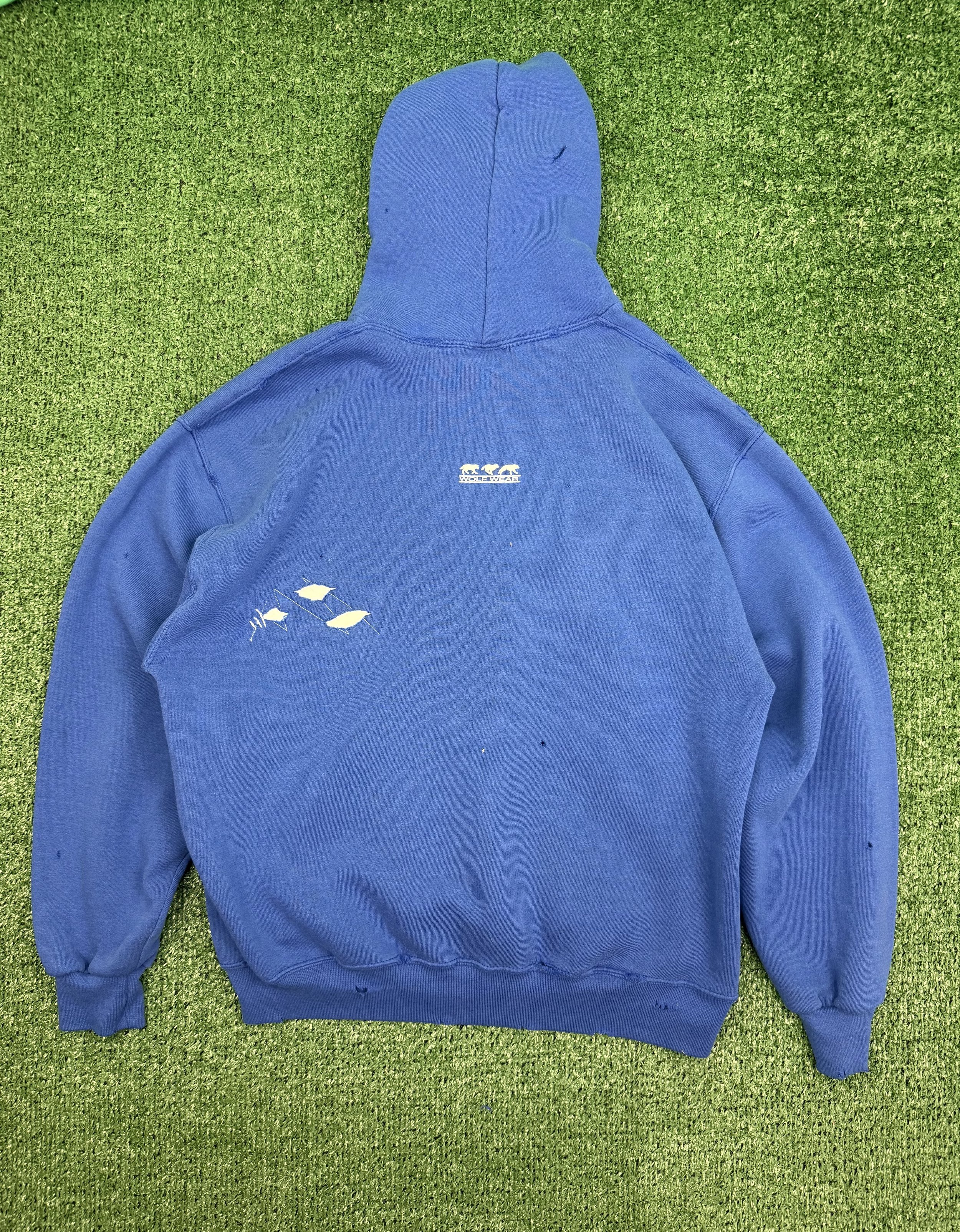 Every custom hoodie is 1:1 hand stitched and hand distressed by me.
